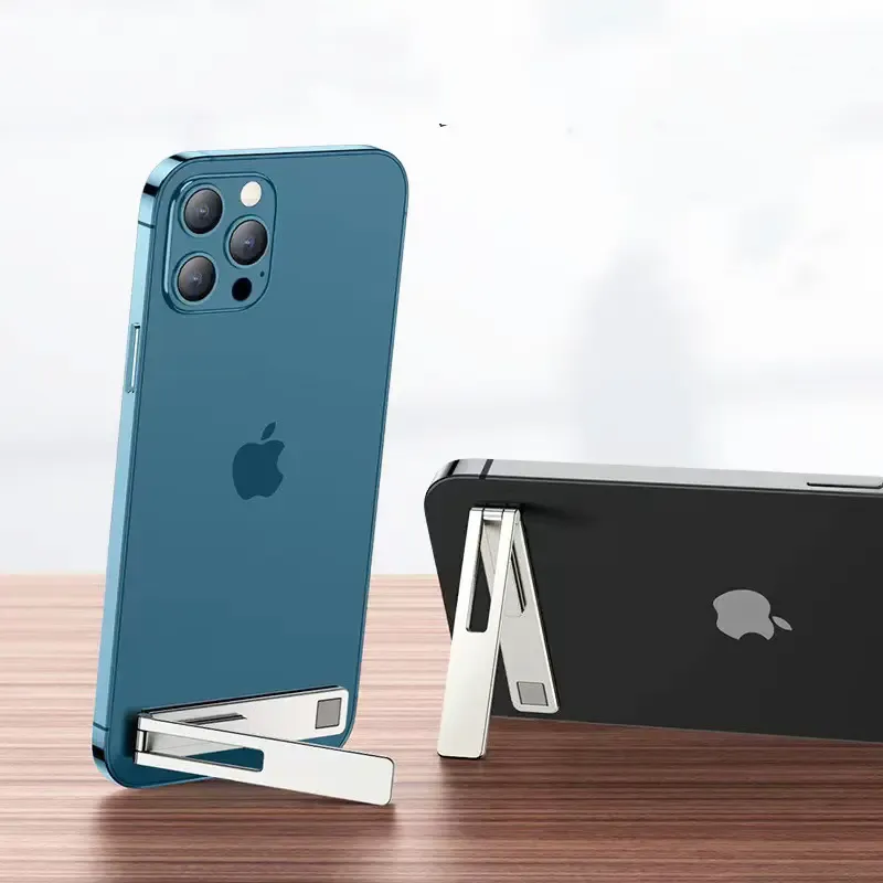 Mini phone stand, foldable, invisible, and portable metal phone holder, suitable for desktop use and compatible with all mobile phones.